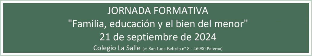 Os informamos que desde FCAPA, con la financiación de la Diputación de Valencia, se ha organizado una Jornada formativa abierta a todas las familias de la sociedad valenciana titulada «Familia, educación y el bien del menor» para el sábado 21 de septiembre de 2024 en el salón de actos del Colegio La Salle (c/ San Luis Beltrán nº 8 – 46980 Paterna) para analizar el sistema educativo y la situación educativa actual por medio de dos ponentes de reconocido prestigio: Dra. Dª Catherine L’Ecuyer «¿De dónde vienen y adónde van los métodos que encontramos en nuestras aulas?» y Dr. D. Gregorio Luri Medrano «Hablando de lo que importa: la educación, hoy».